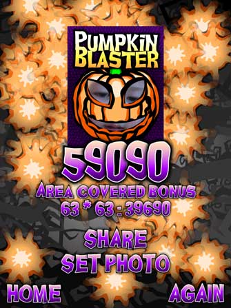 The more pumpkins you blast, the more points you score! Score double, triple, quadruple and more with combo explosions! Get extra points with critical shots near the top and bottom of the screen. Earn bonus points by covering large areas with pumpkin explosions!